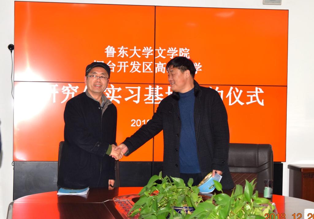 12月20日下午,文学院与烟台经济技术开发区高级中学就合作建立本科生见习研习基地、研究生专业实践基地签约仪式在开发区高级中学会议室成功举行。