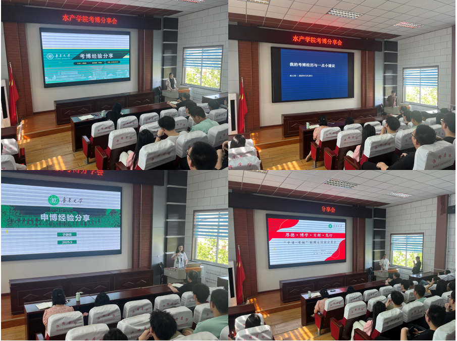 此次考博经验分享会的成功举办,为水产学院学子们搭建起了一座高效的学习交流桥梁,帮助同学们对考博有了更为清晰、全面的认知与规划。近年来水产学院高质量育人成果频出,是学院坚持立德树人根本任务的重要展现。未来,学院将持续开展系列学术交流活动,助力更多怀揣学术梦想的青年才俊扬帆起航,在科研道路上勇攀高峰。(撰稿:王婷婷;初审:王婷婷;审核:杨苗;终审:郭连军)