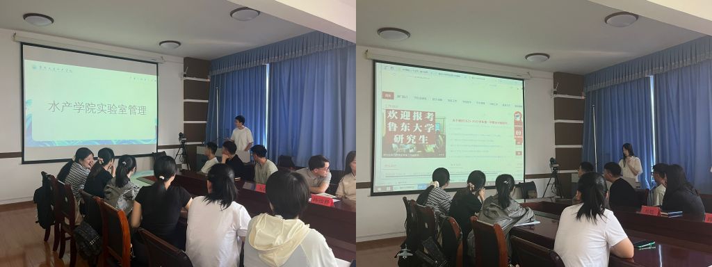院长助理王凯教授详细介绍了学院的学科优势与发展前景。他表示,学院在“海洋水产养殖新品种培育”等方向处于省内领先地位,积极践行学校“响应·更新·融合·服务”的发展理念,持续推动学科建设。目前学院拥有水产一级学科硕士点和渔业发展专业学位硕士点,建有牡蛎种质创制与高效养殖山东省工程研究中心、山东省海马良种繁育及利用工程技术协同创新中心等多个重要平台。他鼓励同学们主动学习、积极科研,善用学院资源,力争在各自研究领域实现新突破。