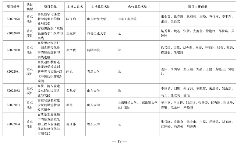 1. 高质量发展视域下的地方高校生物工程专业课程体系构建优化与应用实践, 程仕伟, 重点项目, 2022