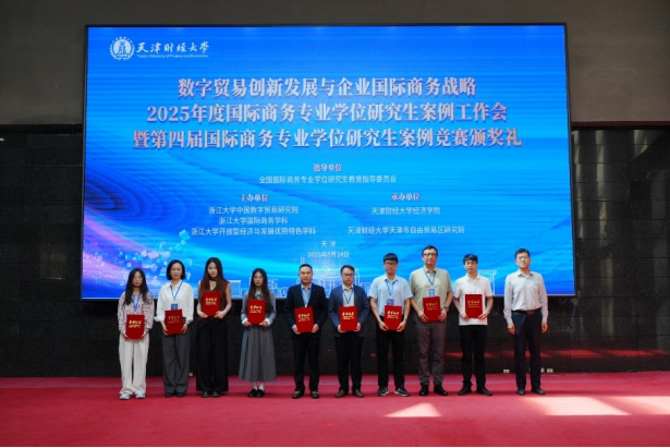 由全国国际商务专业学位研究生教育指导委员会作为指导单位,由浙江大学中国数字贸易研究院、国际商务学科、开放型经济与发展优势特色学科作为主办单位,由天津财经大学经济学院、天津市自由贸易区研究院作为承办单位的2025年度国际商务专业学位研究生案例工作会暨第四届国际商务专业学位研究生案例竞赛颁奖礼大会,包括颁奖典礼、主旨报告以及国际商务案例写作培训三个部分。大会对明年即将在东南大学举行的第五届案例大赛进行了预告。国际商务硕士研究生导师李艾伦、国际商务硕士研究生于芳慧线下参加了本次会议,2024级国际商务硕士研究生和部分国际商务硕士研究生导师线上参会。
