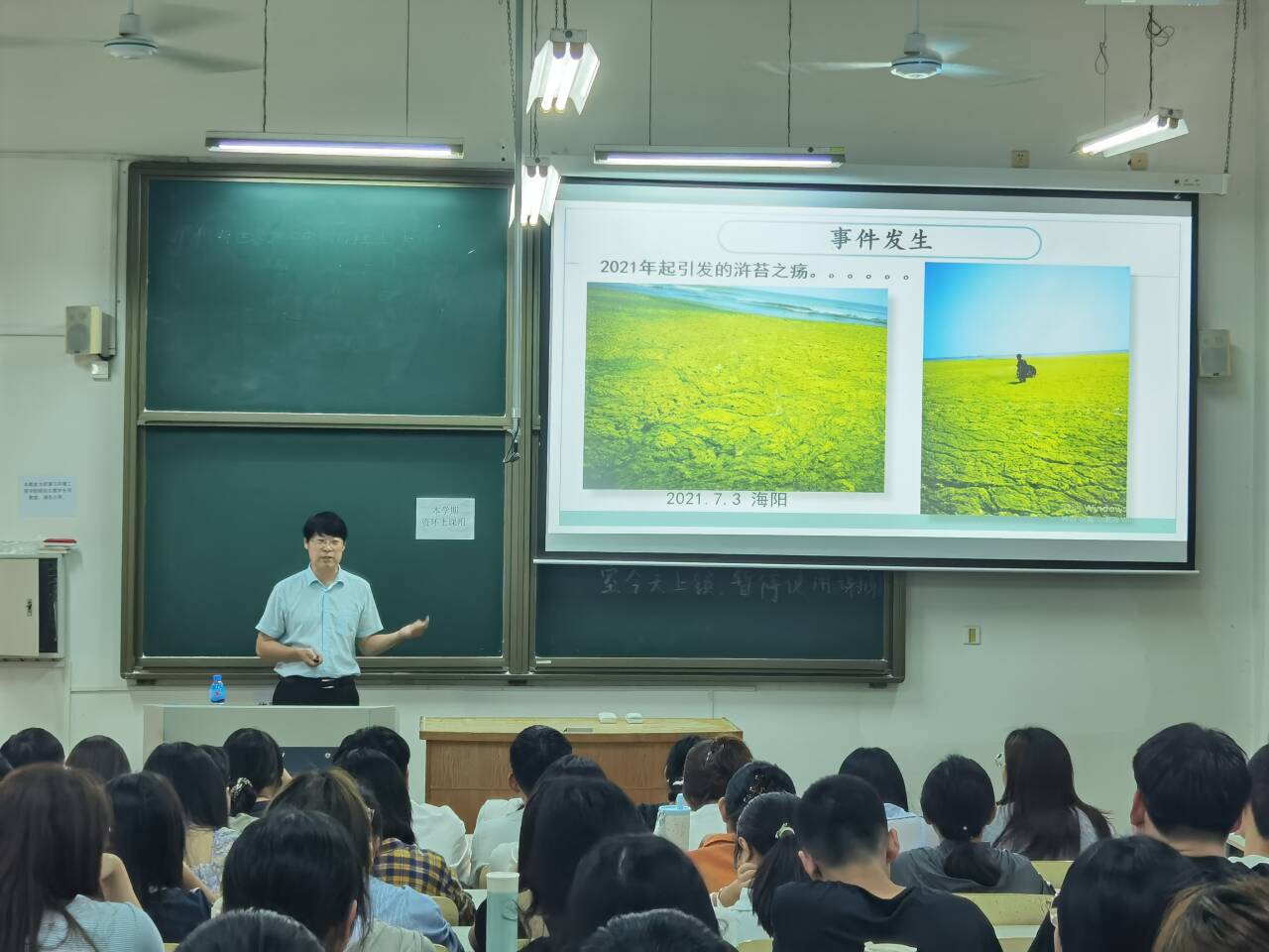 9月12日,吴孟泉教授聚焦“遥感智能解译研究”开展学术分享,结合自身在沿海浒苔监测领域的研究成果,深入解析浒苔暴发的生态环境背景与影响,同步介绍遥感技术在浒苔监测与治理中的最新进展,鼓励新生关注海洋环境议题,积极投身相关科研实践。