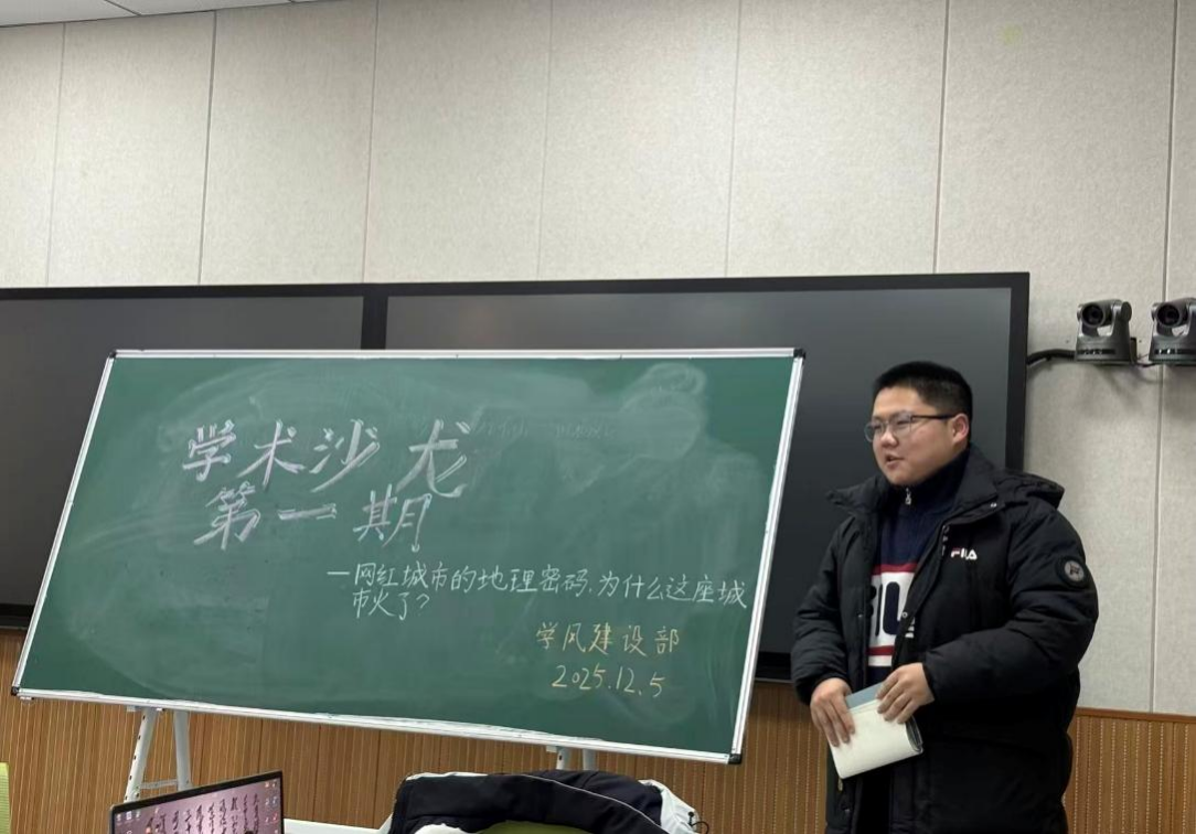 12月5日,资源与环境工程学院首期学术沙龙活动在学院5513教室顺利开展,以“解码网红城市地理基因”为核心议题,同学们畅所欲言,碰撞思维火花,共探城市形象传播的现在与未来。