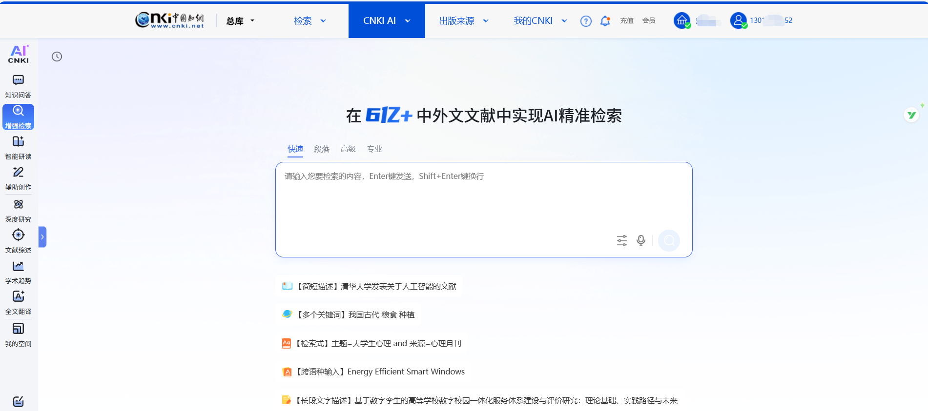 访问入口:https://ai.cnki.net/ (知网首页检索框上方CNKI AI)