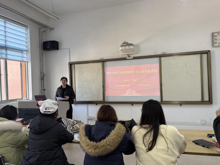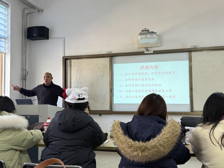为深化胶东红色文化研究、提升学生学术实践能力,11月19日上午,山东省乳山市广播电视台电台部主任记者于家广在南区1号教学楼120教室作主题为“胶东红色文化视域下的口述历史研究”专题讲座。本次讲座由副院长孟军教授主持,硕士研究生导师赵飞飞教授作总结发言,马克思主义学院2025级学术型硕士研究生全程参与。
